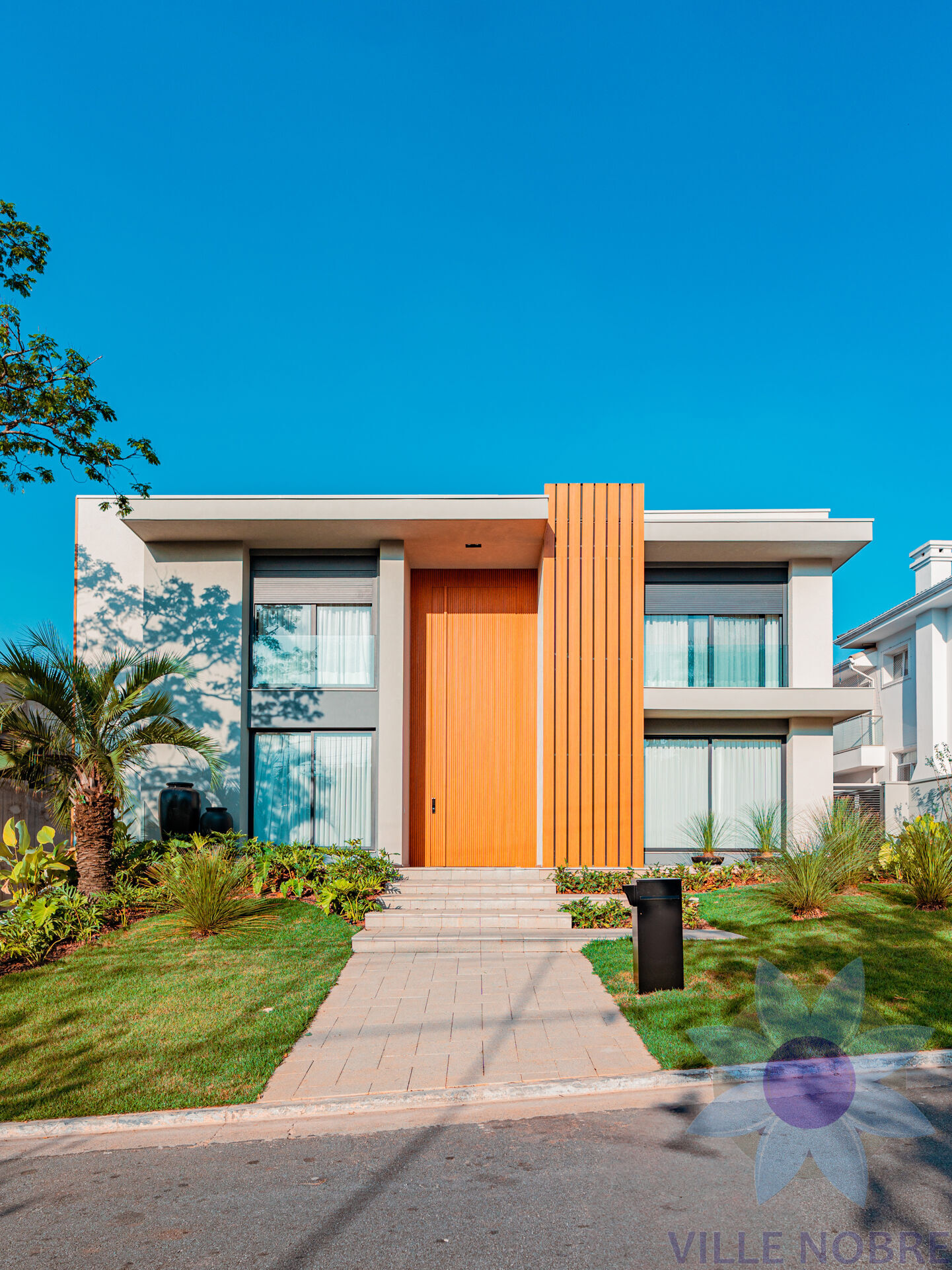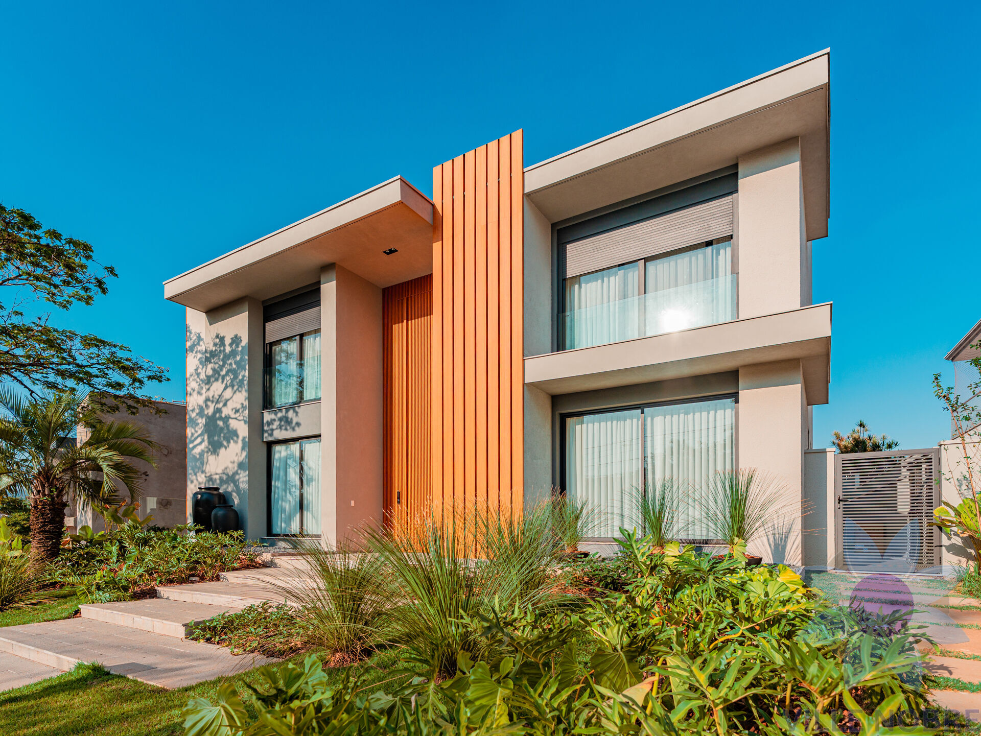 • Fachada imponente com porta de entrada de 6 m de altura e brises em alumínio