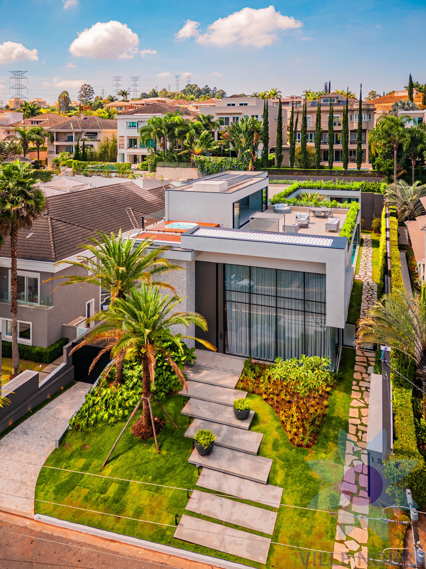 Localizada em um dos condomínios mais exclusivos de Alphaville, esta residência icônica redefine o conceito de morar com sofisticação, tecnologia e conforto absoluto. Projeto moderno e imponente, com fachada envidraçada revestida em pedra Pasinato e porta social com 7 metros de altura, impressionando desde a chegada.