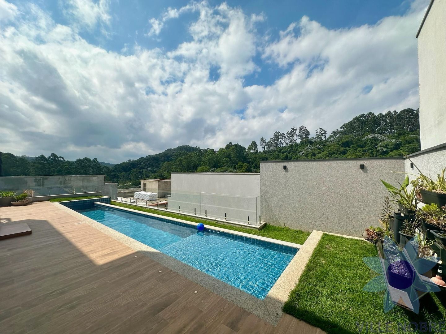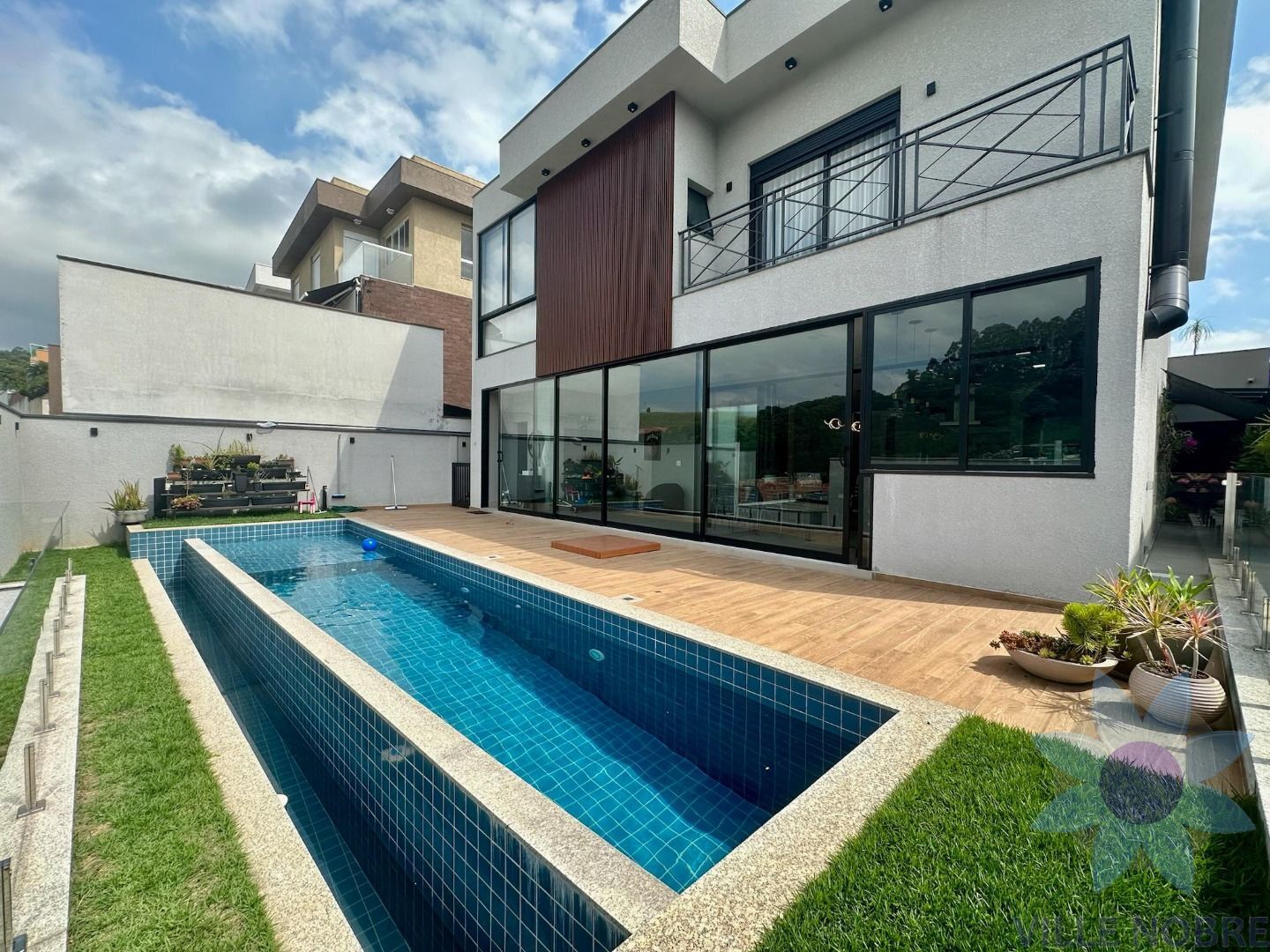 Residência com 422,24 m² de terreno e 372,10 m² de área construída, localizada em um dos pontos mais privilegiados do condomínio, com vista permanente para a mata preservada e excelente insolação na área de lazer (face norte). O projeto funcional e sofisticado conta com 3 suítes amplas, sendo a master com hidromassagem, chuveiro duplo, closet com penteadeira e espaço para academia com vista para a natureza. Possui living com pé-direito duplo, lareira revestida em mármore, sala de jantar integrada à cozinha com ilha, sala de TV, escritório e lavabo, além de ar-condicionado, persianas automatizadas e armários planejados. Na área externa, a piscina com borda infinita e hidromassagem se integra ao espaço gourmet com churrasqueira. O imóvel ainda oferece lavanderia, porão amplo, depósito, sistema de câmeras e 4 vagas de estacionamento, sendo 2 cobertas, garantindo conforto, privacidade e total integração com a natureza.