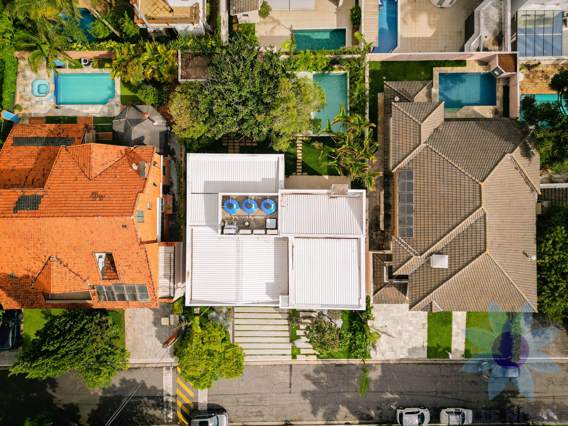 Com 600 m2 de terreno e 465 m2 de área construída, a casa apresenta uma